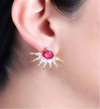 Descrição: banho de ouro 18K; cristais rosa escuro e brancos